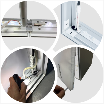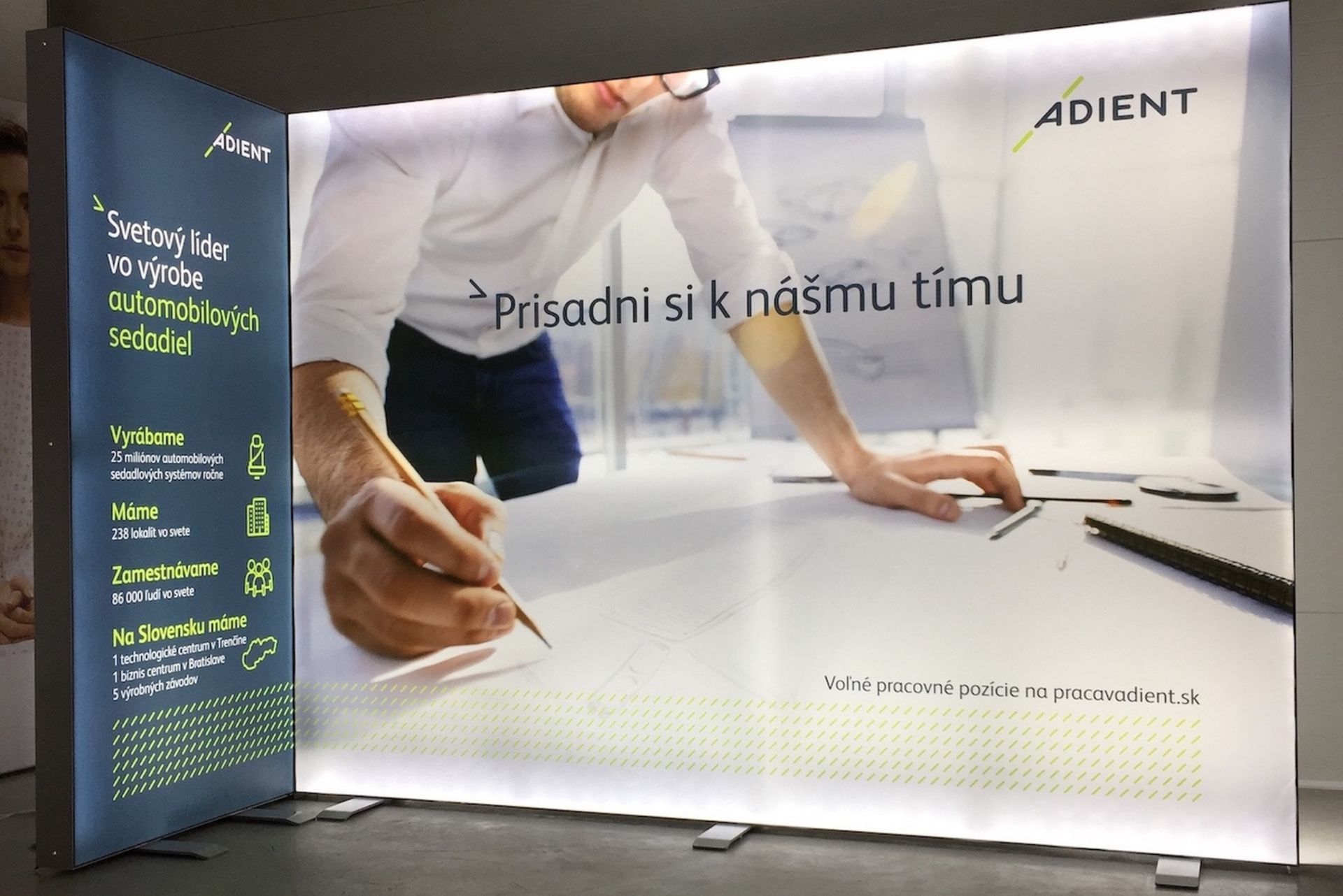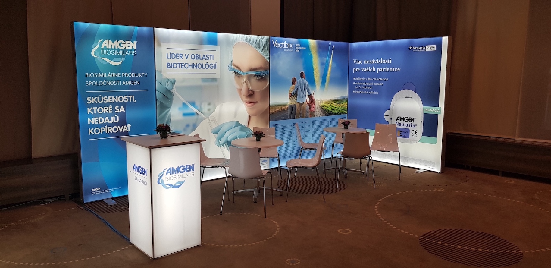 LUMINOR LED je plně podsvícený oboustranný modulární lightbox system, který se dokáže přizpůsobit požadavkům dané plochy. ... Umožňuje jednotlivé stěny vzájemně propojit do jednoho celku bez předělů, propojením vnitřního LED osvětlení vznikne jednolitá stěna bez vnitřních stínů s jedním textilním panelem přes celou plochu. Stěny lze samozřejmě spojovat do různých úhlů případně je použít samostatně. Expozici je možné doplnit o uzamykatelnou kuchyňku nebo LCD display. Textilní panely jsou vyráběny sublimačně z nemačkavého materiálu a jsou jednoduše vyměnitelné. Vysoká kvalita provedení hliníkových rámů i vnitřního LED osvětlení předurčuje systém k dlouhodobému používání. Vyrobeno v Německu.
