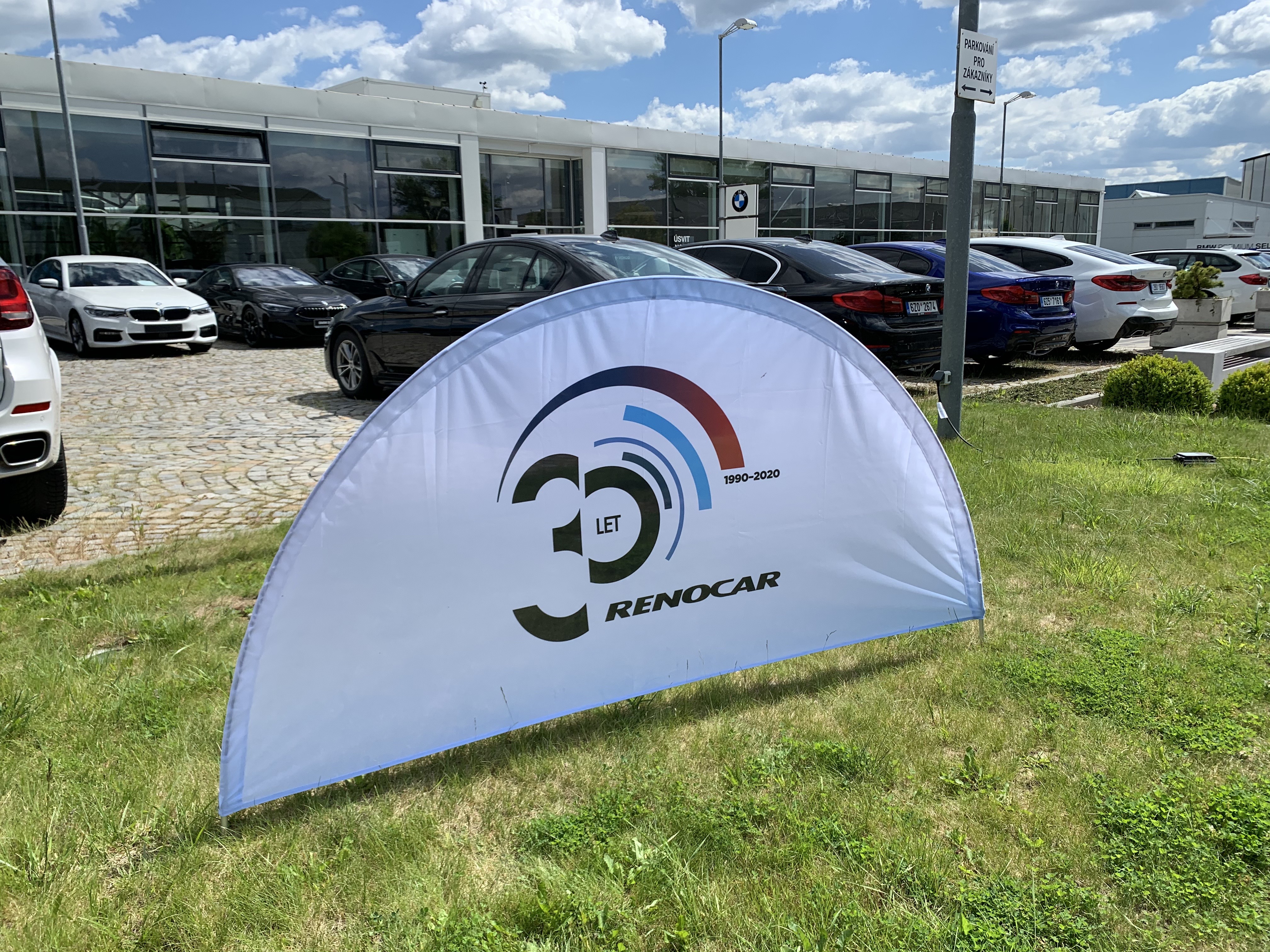OUTDOOR RADIUS: jedinečný reklamní poutač s napnutou textilní grafikou zapíchnutý v trávě nebo písku. Ideální reklama pro golfové akce, firemní dny, auto prezentace a motosrazy.