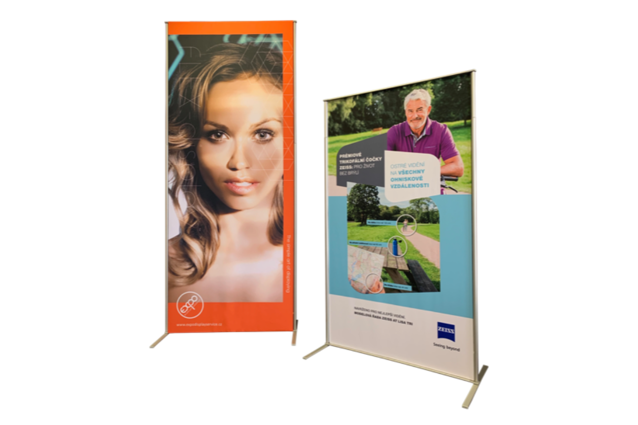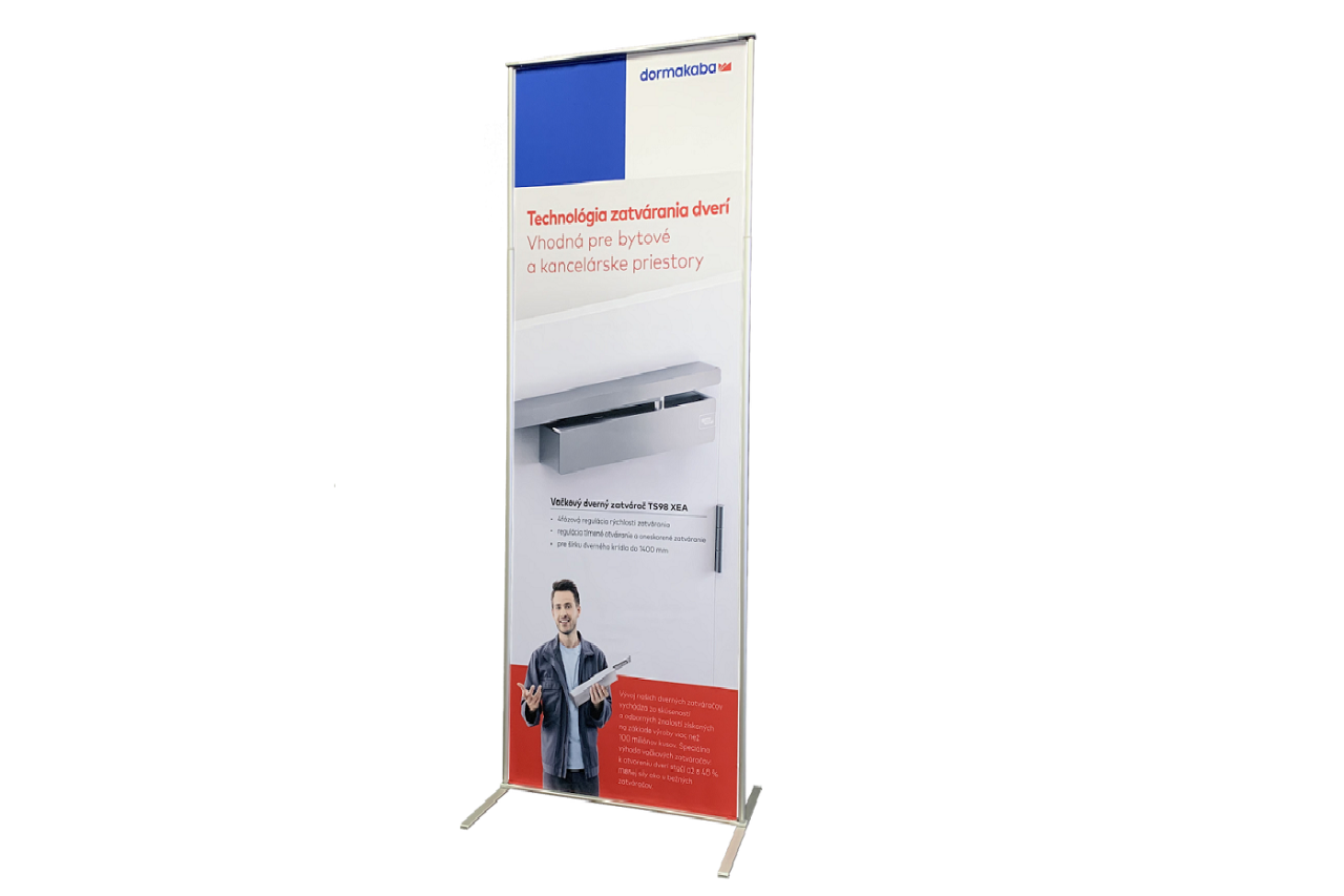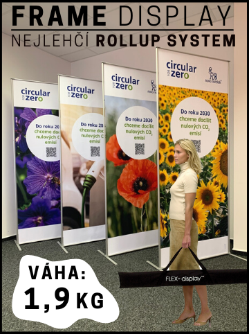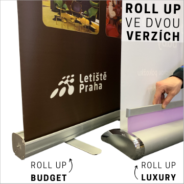 Pokud hledáte ekonomický prezetační systém do 120 cm šířky, vyberte si klasický rollup (BUDGET nebo LUXURY) nebo lehkou elegantní variantu FRAME rollup s textilním panelem.