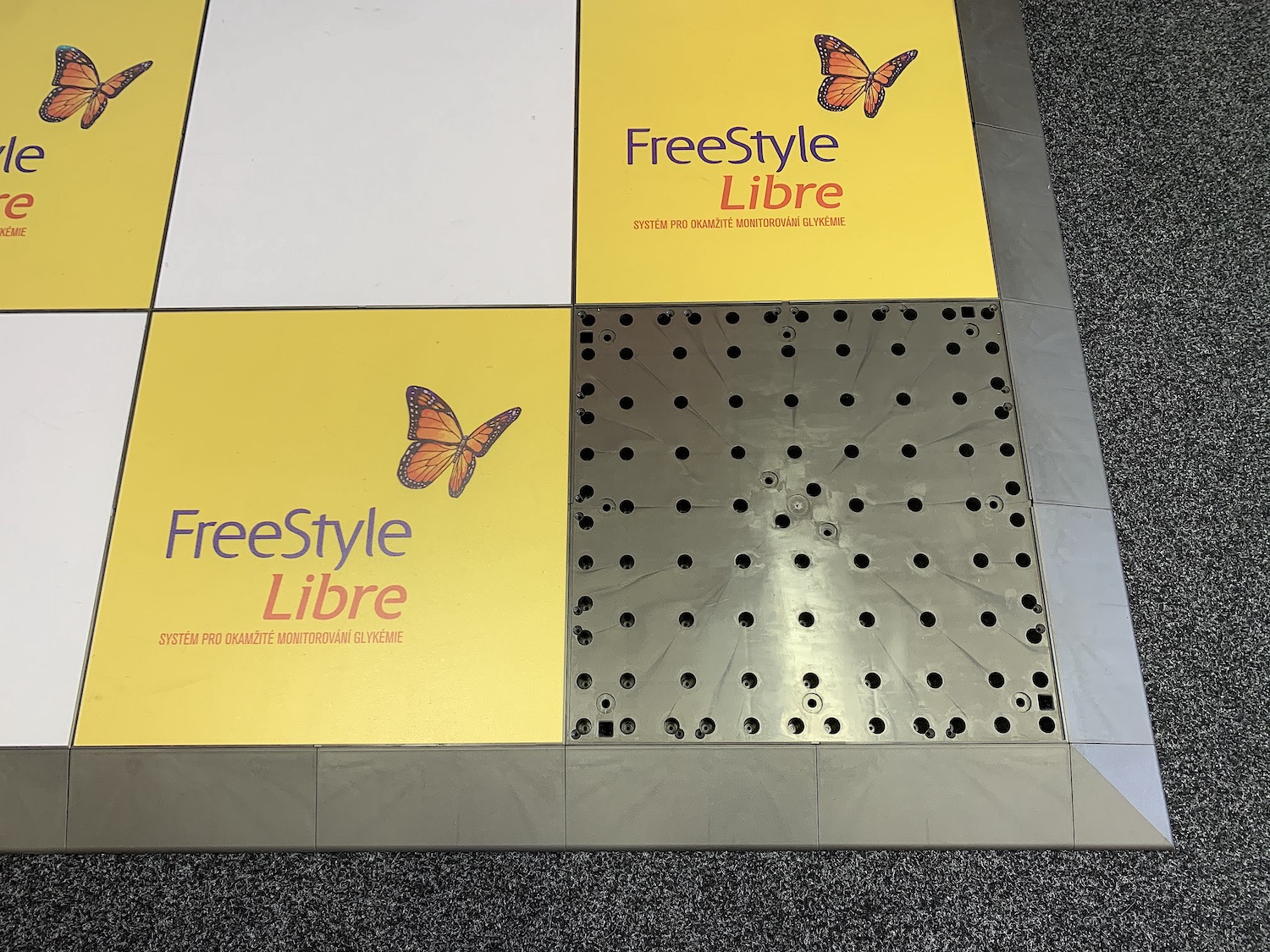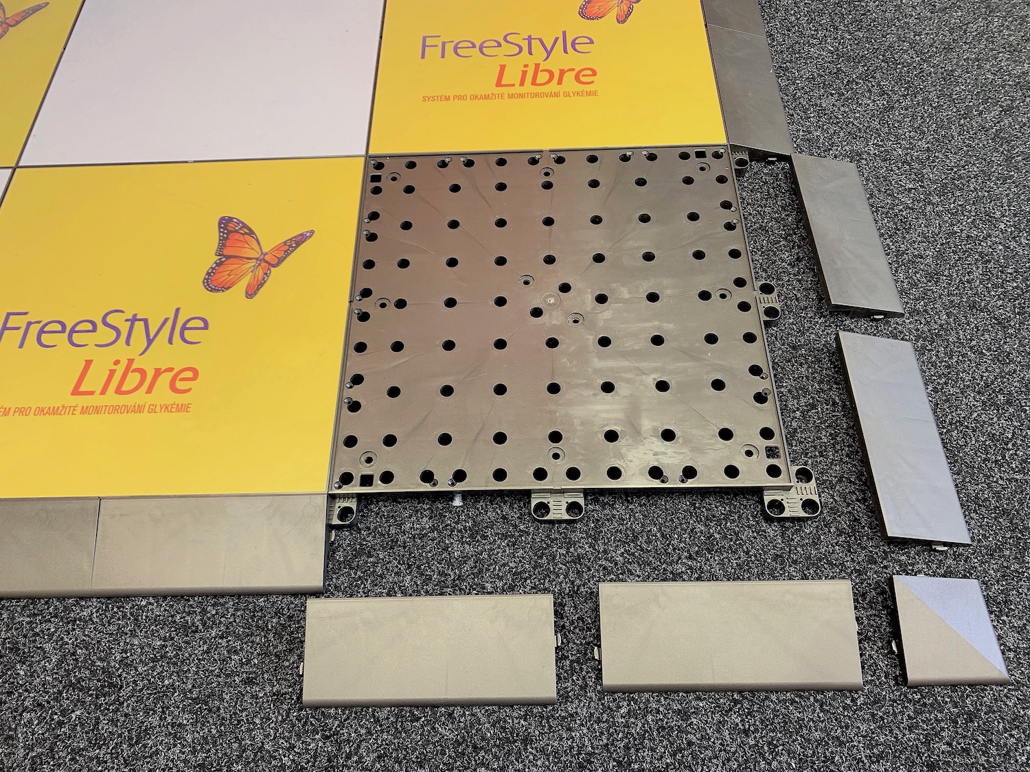 EXPOFLOOR je jedinečná rozebíratelná a přenosná podlaha (pódium) s modifikovatelným povrchem, určená pro interiéry a výstavy.