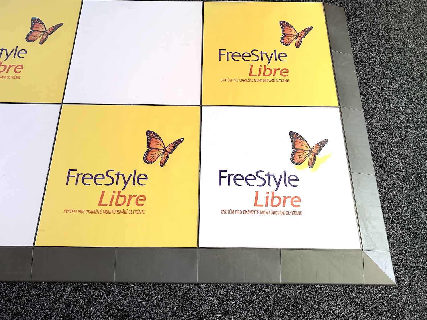Okamžitá možnost výměny grafiky z různých materiálů (papír, PVC, Al...) Kabeláž je možné vézt pod podlahou a vyvézt v požadovaném místě.