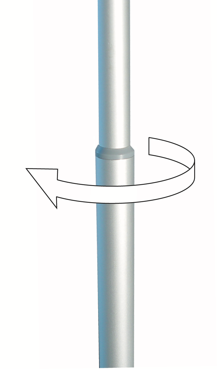 FLEX-display umožňuje nastavit výšku a polohu panelu, tak jak Vám vyhovuje. Poloha panelu může být zaaretovaná hned od spodní časti podstavce - v tomto případě nebudou vidět 2 podpůrné teleskopické tyče. Nebo si panel vysunete dle potřeby až do max. výšky 2,5 m a potom napnete - zaaretujete spodní část.