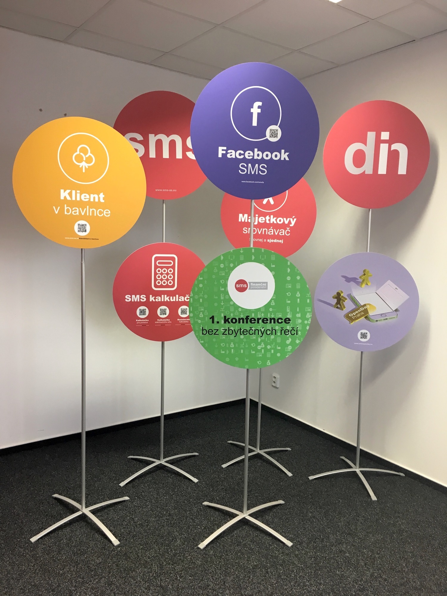 Jednostranný FLEX Display s podstavcem CROSS a PVC kruhem s potiskem. Na tyč lze upevnit jeden nebo dva kruhy.