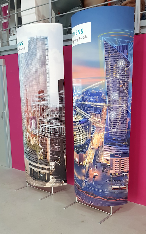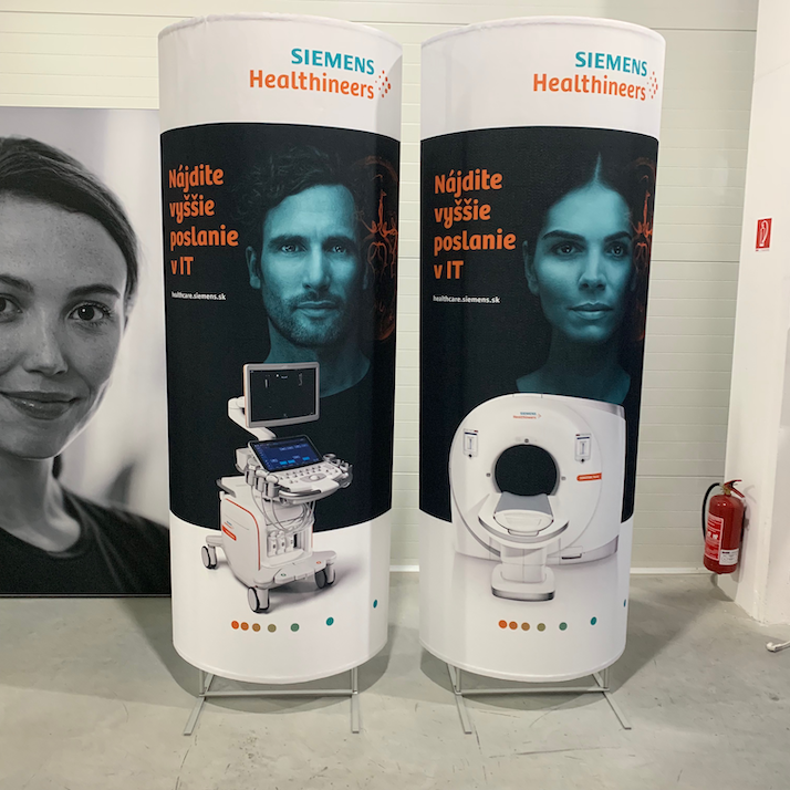 Textilní panel je možné vysunout podle potřeby až do výšky 2,5 m díky 2 teleskopickým tyčím