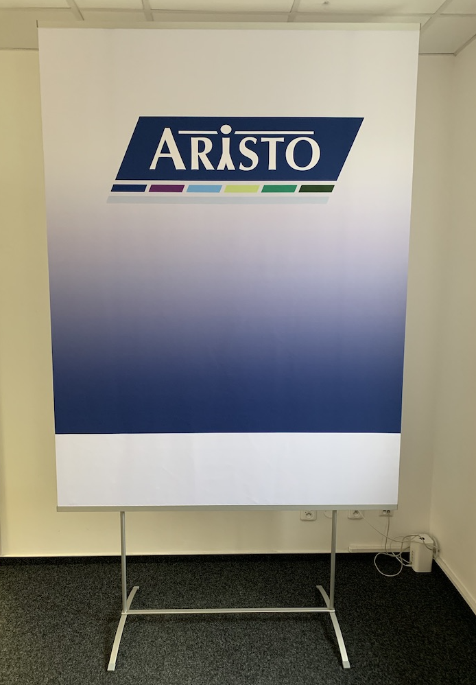 FLEX-display umožňuje nastavit výšku a polohu panelu, tak jak Vám vyhovuje. Poloha panelu může být zaaretovaná hned od spodní časti podstavce - v tomto případě nebudou vidět 2 podpůrné teleskopické tyče. Nebo si panel vysunete dle potřeby až do max. výšky 2,5 m a potom napnete - zaaretujete spodní část.