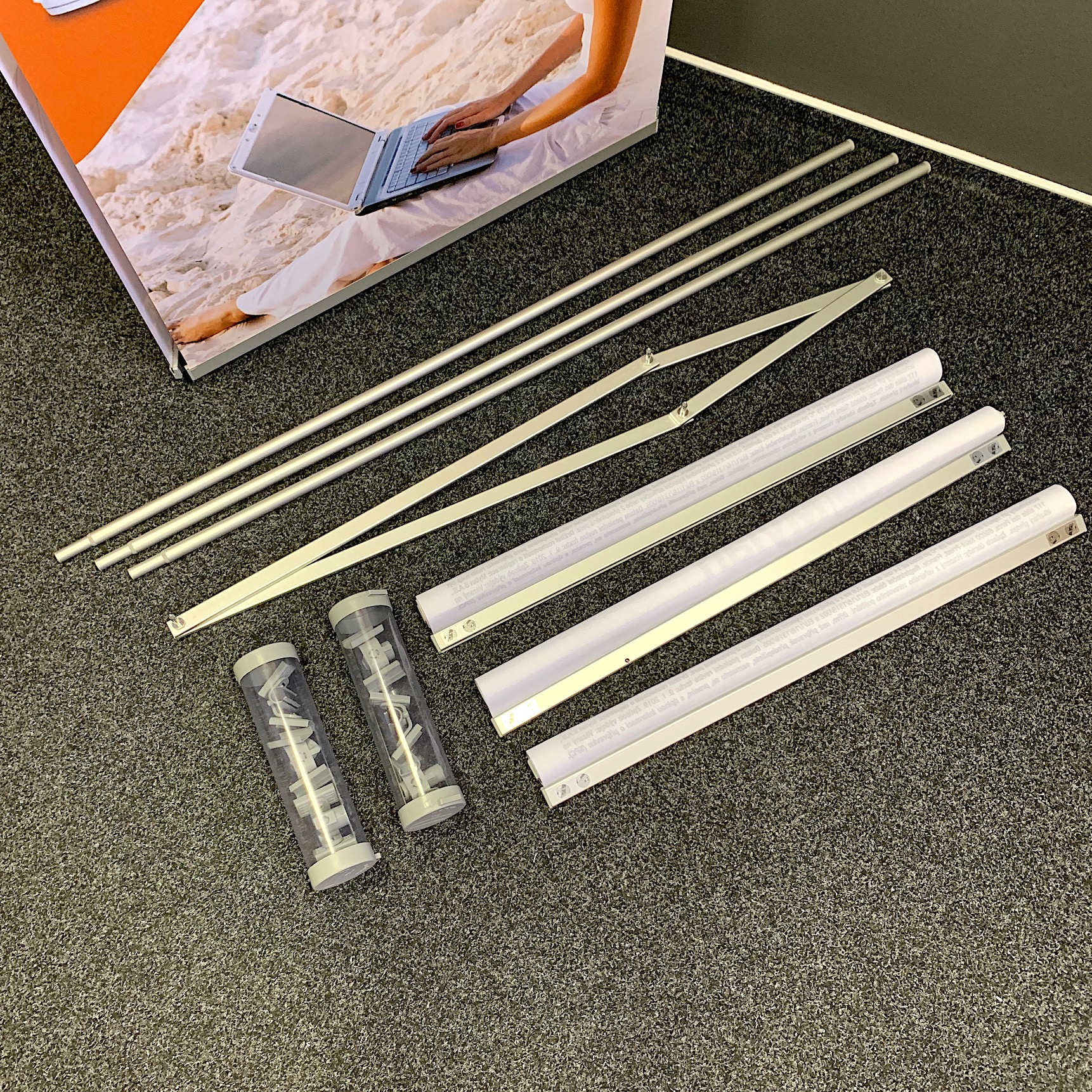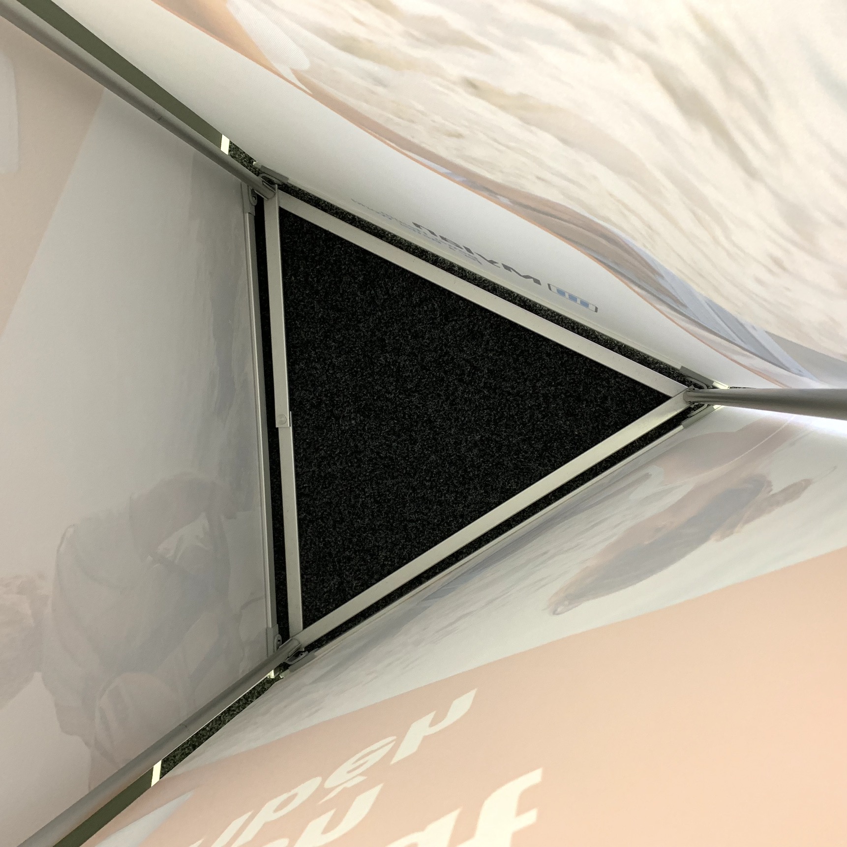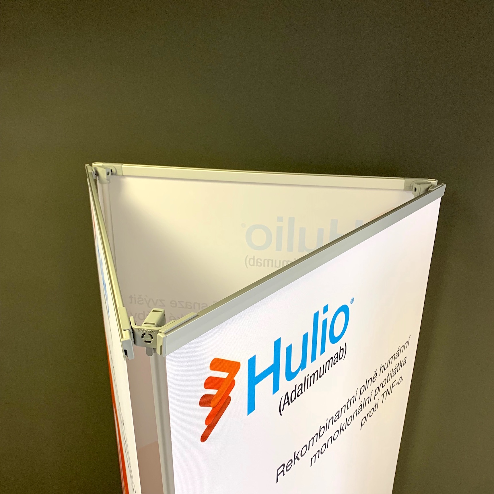 Trojstranný dipslay se skládá z 1 podstavce, 3 teleskopických tyčí s uchytkami a 3 textilních panelů. Nejlehčí prezentační sloup na trhu. Textilní panely je možné vysunout podle potřeby až do výšky 2,5 m díky teleskopickým tyčím. FLEX totem poskytne na minimální ploše maximální reklamní efekt.