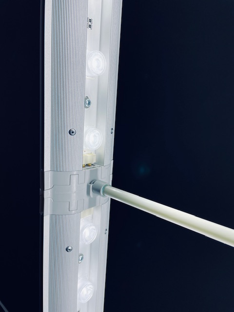 Oboustranně podsvícený lightbox je vhodný pro častou montáž a převoz. Tvoří jej rozkládací rám se 2 stabilizačními nohama. Rám je lehce rozložený jedním pohybem - system pop up (viz video níže). Zabudovaný transformátor s 1,9 m kabelem a integrované LED diody, dokonale prosvětlý 2 textilní panely oboustranně, a to bez vnitřních stínů.