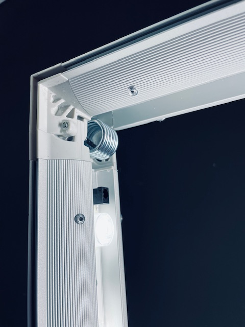 Oboustranně podsvícený lightbox je vhodný pro častou montáž a převoz. Tvoří jej rozkládací rám se 2 stabilizačními nohama. Rám je lehce rozložený jedním pohybem - system pop up (viz video níže).