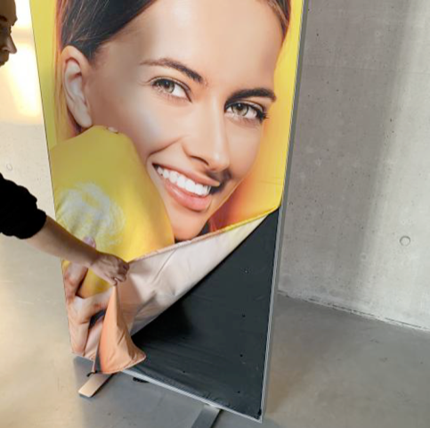 Jednostranně podsvícený lightbox je vhodný výhradně pro stabilní úmístění, není vhodný pro časté převážení. Rám je lehce rozložený v průbehu 3 minut bez použití nářadí. Přední textilní panel se sublimačním tiskem je dokonale prosvětlený díky LED diodám, které jsou připevněné na zadním textilním neprůsvitném panelu. Zadní strana lightboxu (černá) může být překryta druhým neprůsvitným textilním panelem s vlastní grafikou. Tento panel není součástí, je nutno jej dokoupit. Vše je sbaleno v jedné tašce.