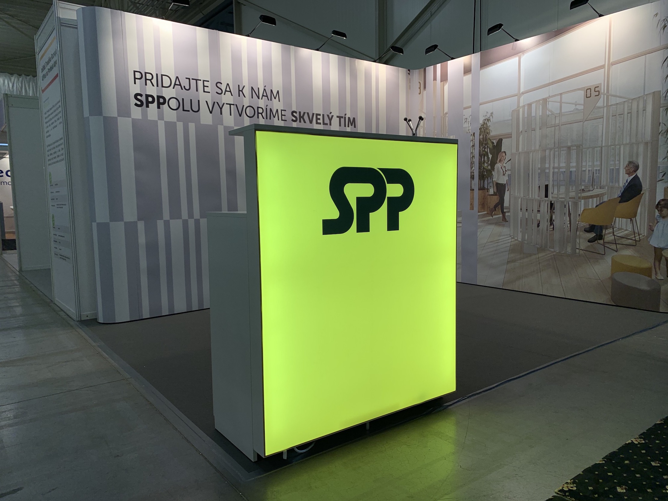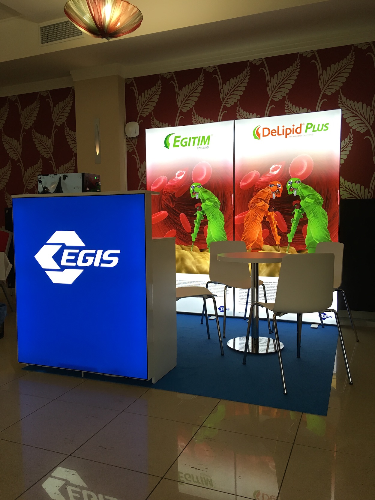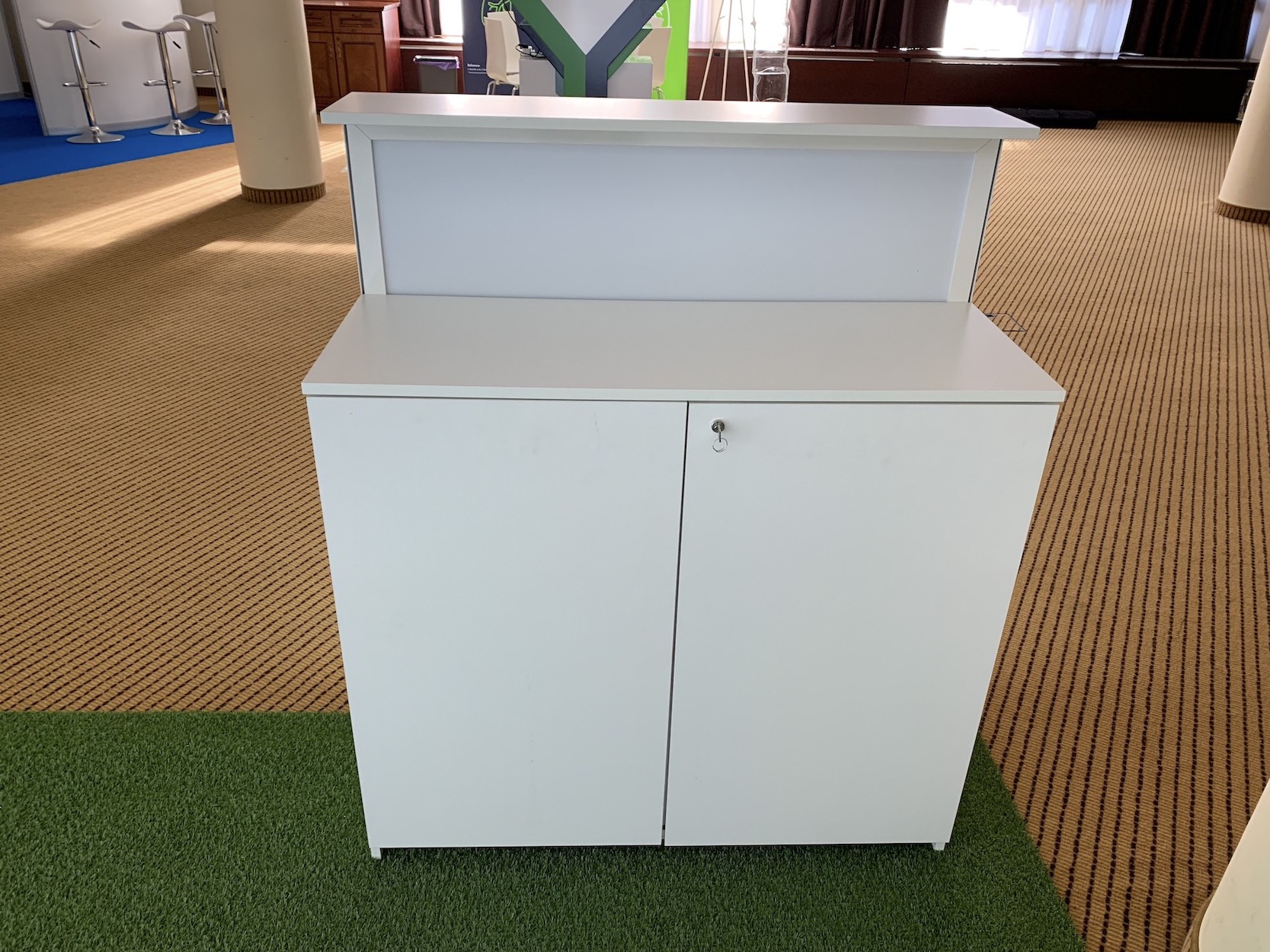 Uzamykatelný pult s podsvíceným předním panelem s rozměrem 100x110 cm a malou barovou nadstavbou. Přední textilní panel je napnutý v hliníkovém rámu jednoduše vyměnitelný. Pro účely přepravy je možné celou uzamykatelnou část rozebrat na jednotlivé díly.