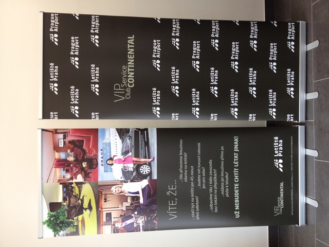 Rollup s navíjecím mechanismem a banerovým panelem. Balený v nylonové tašce. Nejlevnější varianta rollupu.